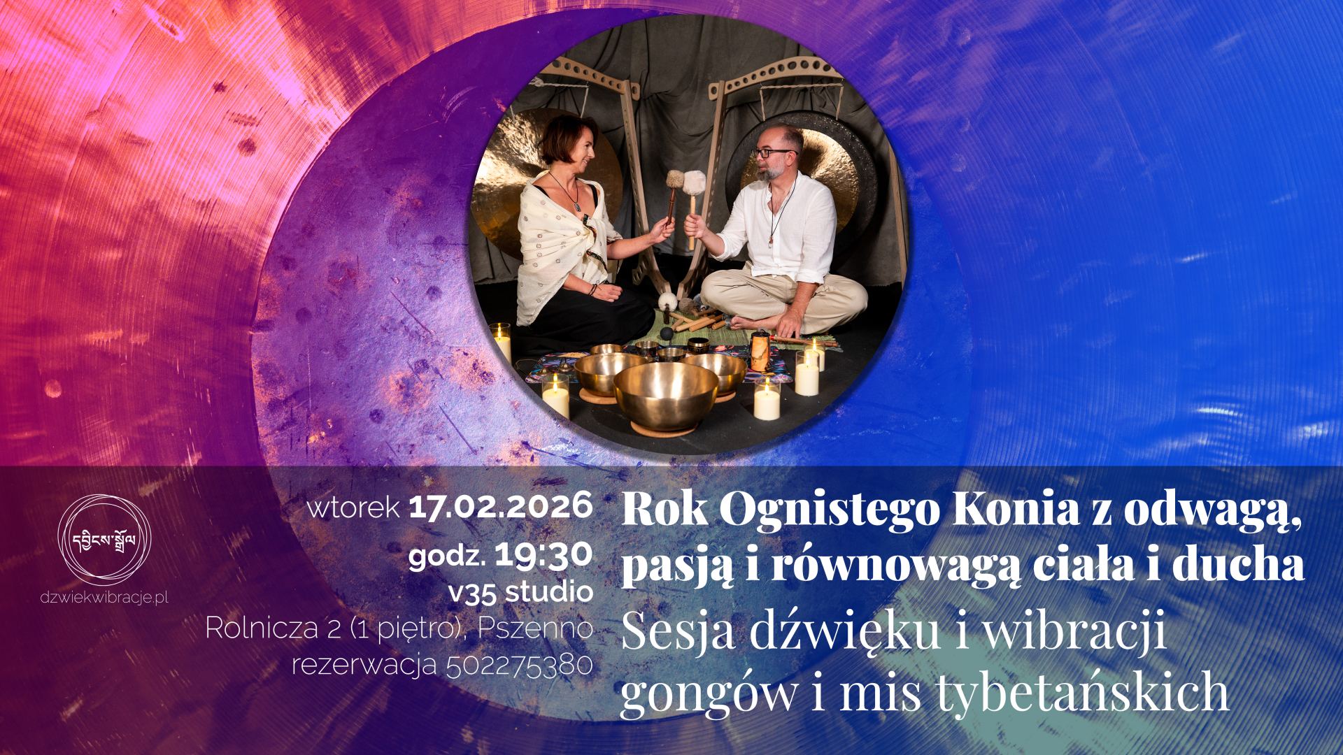 Rozpoczyna się Rok Ognistego Konia – czas odwagi, pasji, wolności i szybkich przemian. Koń przynosi energię galopu, ruchu i spontanicznych decyzji. To rok wyzwań, ale też ogromnej motywacji i odwagi do działania. 🔔 Zapraszamy na sesję dźwięku i wibracji gongów, która pomoże: - wejść w nową energię świadomie, - rozbudzić wewnętrzny ogień i pasję, -zharmonizować ciało i emocje przed intensywnym rokiem, - znaleźć równowagę między dynamiką Konia a Twoją własną naturą. ✨ Przyjdź, jeśli chcesz wejść w ten rok w harmonii z własną energią, pozwalając wibracją gongów otworzyć drogę do nowych możliwości. 🏠 Nasze studio to miejsce spotkań, w którym tworzymy przestrzeń uwalniania poprzez dźwięk i wibracje – to droga do harmonii, wewnętrznego spokoju i głębszego kontaktu z własną energią. Zapraszamy tych, którzy byli z nami wcześniej,i tych, którzy dopiero teraz poczuli wołanie, by wejść w tę przestrzeń. 🌌 Dźwięki gongów i mis tybetańskich tworzą wielowymiarowe pole wibracyjne, które może: - prowadzić w stan głębokiego relaksu i rozluźnienia - wyciszać umysł i otwierać przestrzeń serca - harmonizować przepływ energii w ciele - wspierać naturalne procesy oczyszczania i regeneracji - przywracać poczucie połączenia – ze sobą i z tym, co głębsze Każda sesja jest osobistą podróżą. Każde doświadczenie jest właściwe takie, […]